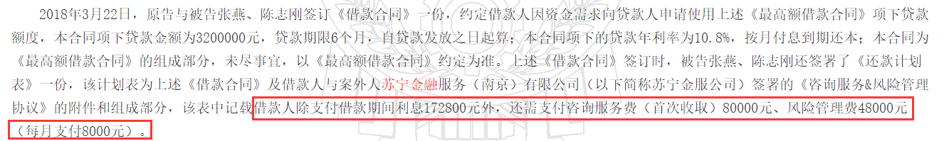 在法院公布的多起涉及苏宁金融贷款业务的民事诉讼中,可以看出苏宁金融在贷款业务中多次以咨询服务费、风险管理费等方式变相收取“砍头息”。