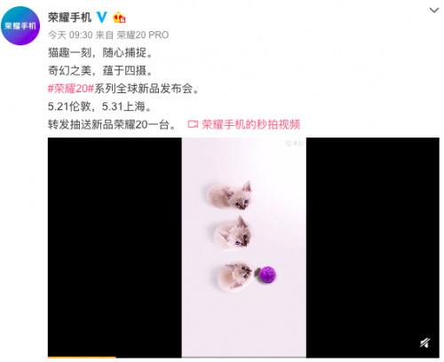此前,荣耀20系列正式官宣,公布产品slogan为“定格奇幻之美”,主打拍照功能。随后更是官宣了荣耀20系列将搭载四摄,并将在微距、长焦及防抖上有极大升级,带来更多元化的拍照玩法。更有趣的是,荣耀20系列在长焦、微距和防抖上的表现还被形容为“望远镜”、“放大镜”和“鸡头”,网友纷纷表示:坐等发布。