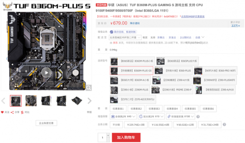 TUF B360M-PLUS GAMING S主板:京东销量冠军 到手仅679元