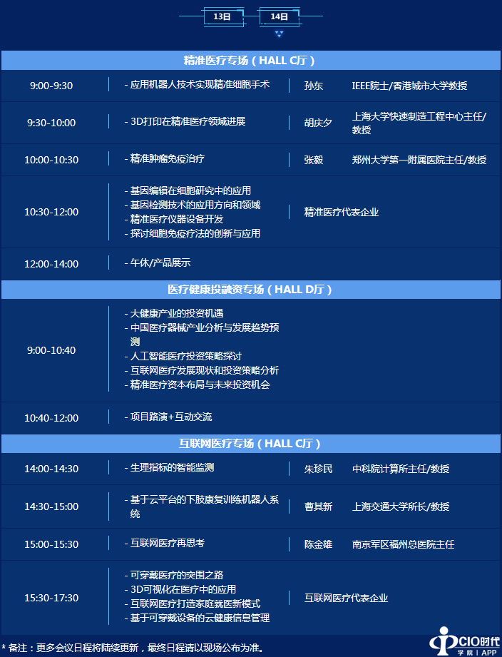 “OFweek 2017(第二届)中国医疗科技大会” 将于11月13-14日在深圳举办,会议邀请了知名机构、协会、医院、企业及专家学者等代表,重点探讨医疗科技领域最新方向和大数据、人工智能等热门话题。此次会议分为主论坛大会主题报告、健康医疗大数据专场、精准医疗专场、互联网医疗专场和医疗健康投融资专场。此次活动邀请了张元亭院士、张建伟院士、孙东院士、蔡自兴院士、姚建铨院士、谭建荣院士、张毅教授、陈金雄教授、吴健康教授、朱珍民教授、曹其新教授、关毅教授及胡庆夕教授等专家莅临现场,届时专家精英汇聚,干货无数,现在先来提前分享一些。