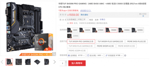 AMD 锐龙5 3500X处理器7nm制程工艺,6核心6线程,游戏性能优异。正所谓好U配好板,特与之搭配的是“B450M板皇”华硕TUF B450M-PRO GAMING电竞主板,该主板配置强悍,做工精湛、质量可靠,广受玩家赞誉。凭借硬实力,更是斩获权威媒体电脑报“年度爆款产品”和快科技“最具性价比产品奖”称号,可谓实力斐然!搭配3550X处理可释放强悍效能,现在购买套装相当实惠,到手仅1559元。购买链接:https://item.jd.com/100010549872.html