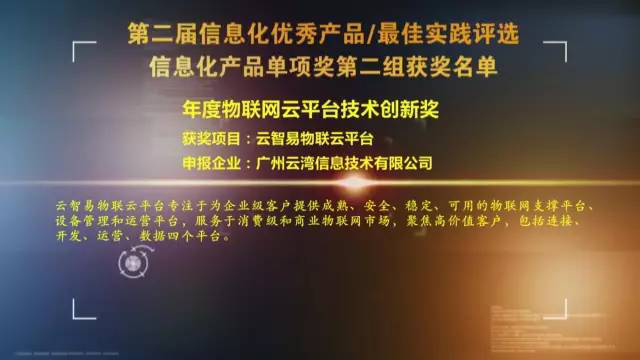 在本次大会中,云智易物联云平台凭借强大的技术实力、成熟的平台架构、优质的服务体验和卓越的业界口碑在众多竞争企业中脱颖而出,荣获 “年度物联网云平台技术创新”奖项。
