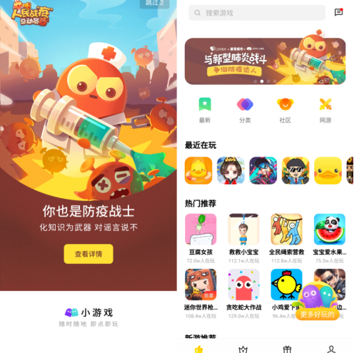 而在2020年2月份,OPPO小游戏紧抓春节高峰,助力合作伙伴在春节期间的产品分发推广,整体OPPO小游戏日活跃用户又创新高。其中,《迷你世界枪战精英》《贪吃蛇大作战》日活跃峰值高达200万,多款游戏日活峰值超过百万。