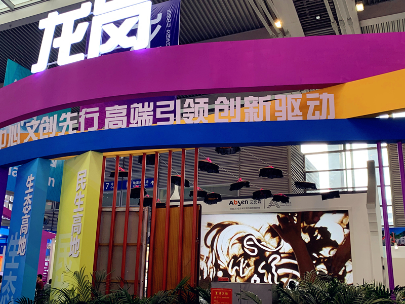 主会场龙岗展区总面积为542平方米,共划分了七大展示板块,展出了来自龙岗区35家文化企业的超过 500件展品,360度演绎了文化的多种可能。其中,艾比森作为文化装备板块中的代表企业,用文化与光电的融合,充分展现了龙岗文化企业的文化特色。