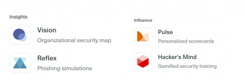 Elevate Security公司产品服务非常契合今年的主题“Human Element”,帮助企业通过已经拥有的数据来给员工打分,观察操作的趋势,并提供个性化的交流,促使员工养成更好的安全习惯。其产品利用四大组件进行管理:通过Vision让安全管理员对员工行为及相关风险做出分析;Reflex负责运行基准评估,并对员工活动进行指标分析;Pulse负责为员工提供培训,帮助他们改善自己的高风险行为;Hacker's Mind则提供一种游戏化培训方案。