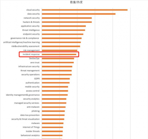 从本届RSA统计出近100个安全热词看,Top 10是云安全、数据安全、网络安全、黑客与威胁、应用安全、威胁情报、终端安全、管理与合规风险、人工智能、风险评估。其中云安全、数据安全、网络安全(Network security)已经连续三年排名前三,而新增热词是黑客与威胁(Hackers & threats)。当然就个人而言,比较关注排在第12位的Incident Response。