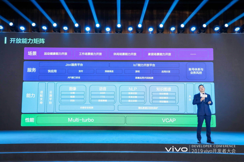 5月15日,vivo在北京召开了以“智慧·开放·共生”为宗旨的开发者大会。在大会期间,vivo发布了首个智能服务生态战略、全新的jovi、开放矩阵、系统升级等一系列技术内容。并以“新服务”与“新生态”为主题,推出了以人工智能技术为主的全新jovi服务平台;以AI为核心,实现数字与现实世界的生态未来。
