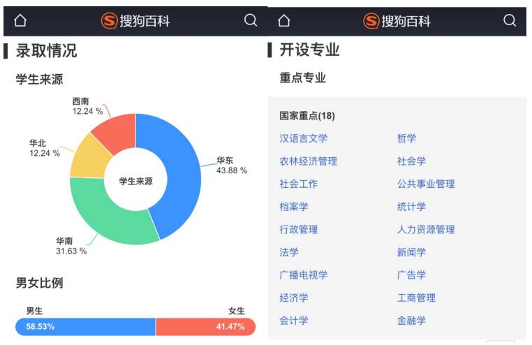 (图:搜狗百科高校类词条“录取情况”及“开设专业”内容)