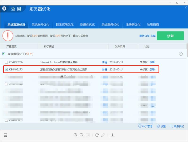 如果不方便打补丁,请务必使用安全狗远程桌面登陆保护功能。