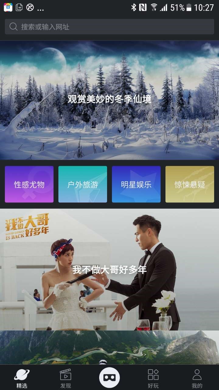 最显而易见的功能,应该就是这次的全新首页模式。虽然在几个版本之前,百度VR已经将首页的内容展示模式,变成了瀑布流加动态封面预览等模式,让每个用户在打开百度VR应用的一瞬间感受到内容的精美。但随着百度VR应用内容的逐渐增加,瀑布流形式的效率好像不如从前,面对日趋增加的优质内容,真正发现你喜欢的内容还是不太容易。