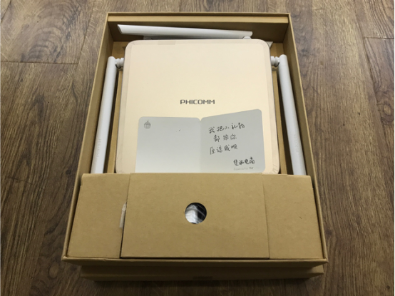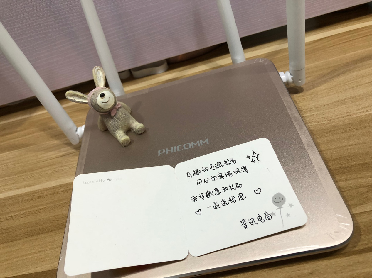 重点来了,打开包装盒一刹那,发现原来除了路由器,还有一份手写的致歉信,注意,是手写的致歉信! 哈哈哈…瞬间有点想笑,又莫名有一份小感动。