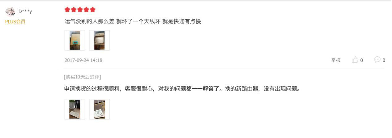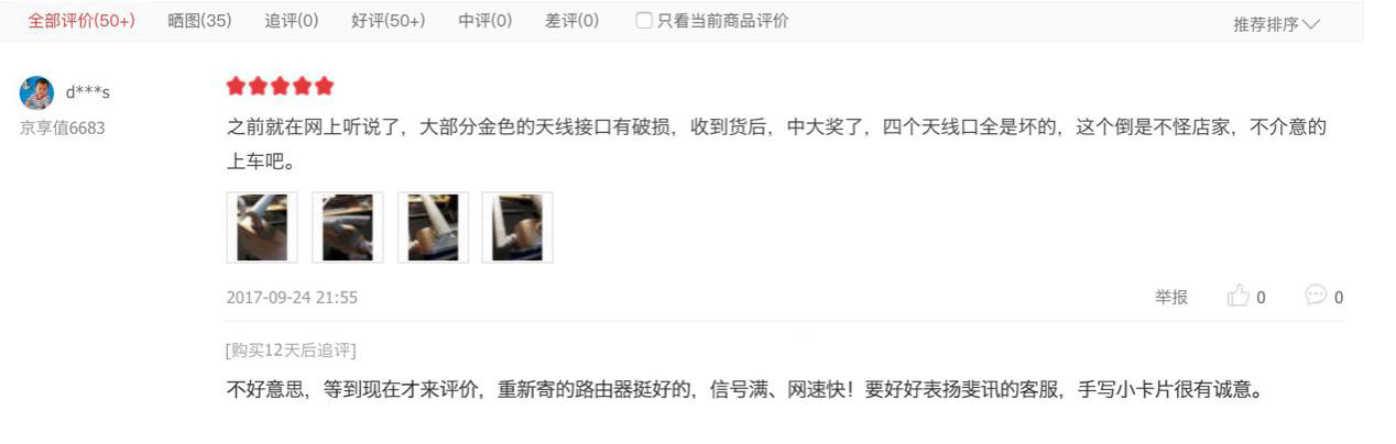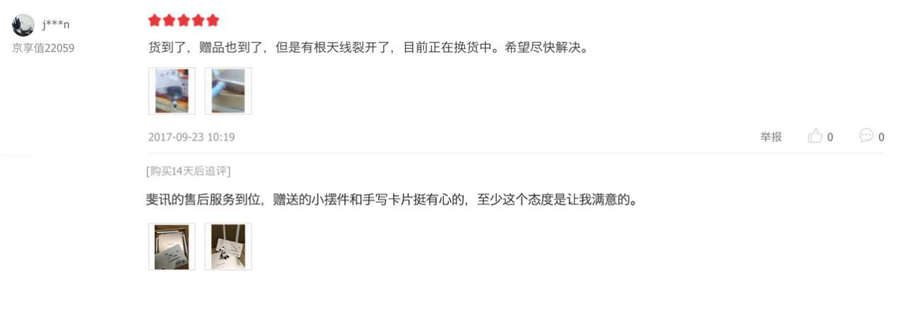 之后,我到京东上也看了下,的确有一些用户遇到了相同的问题,而斐讯客服也都一一回复进行更换。