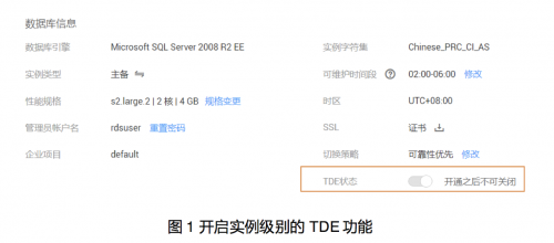 说明:实例级别的TDE功能一旦开启,将不允许关闭。