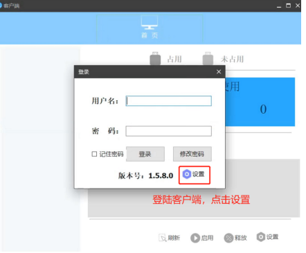 还可在外网环境下使用USB Server客户端进行远程连接访问。下载安装USB Server客户端,在USB Server客户端登录界面,点击“设置”;