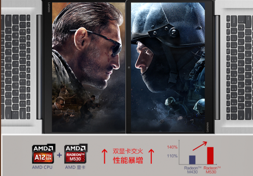 联想IdeaPad 320S还配备有Radeon R5 M430独立显卡,可与A12-9720P的内置融合单显组成双显卡交火,最大化整体性能,将融合单显与独显性能全部发挥,使得联想IdeaPad 320S以轻薄的机身带来超越想象的3D性能,玩转当下主流游戏毫无问题。
