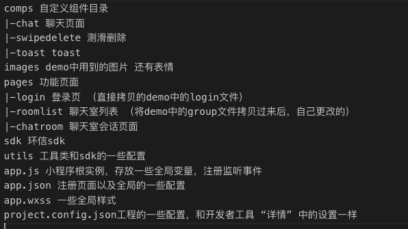就这样了,简单集成聊天室功能,demo中的UI 是开源的,可以根据自己的需求更改~下面是具体实现过程。代码也放在github 上了,有需要的兄弟自取。demo下载地址:https://github.com/lizgDonkey/room-xcx