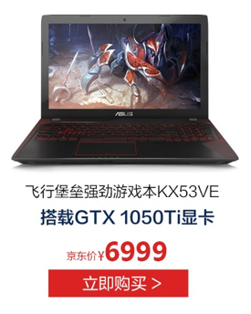 游戏偏执狂的欢乐时光,也是活动正当时!华硕飞行堡垒强劲游戏本KX53VE,配备第七代英特尔酷睿四核处理器和英伟达GTX 1050Ti独立显卡,带来强大的游戏性能以及震撼的视觉体验;炫红背光键盘支持三档可调,让你化身暗夜中的矫健猎手,完成华丽的一击必杀!双硬盘存储组合方案可选,快速运行和海量存储全都要!如此高配杀器,只需6999的活动价就能拿下!