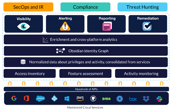Obsidian实现类似的功能,但在RBAC基础上增加了检测和响应功能,通过监控用户的登陆、操作等事件,分析其中异常的行为操作,可以理解为xDR在云端SaaS的应用。本身创新度不大,主要还是新技术与云安全的融合。
