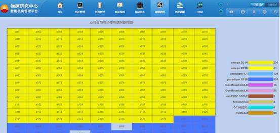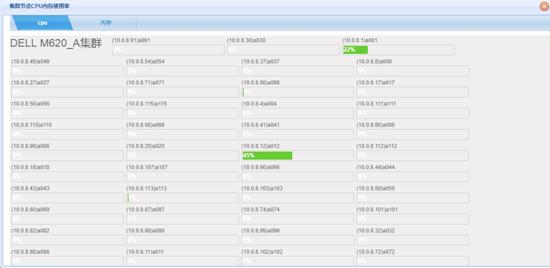 2)通过定制化需求对计算集群节点CPU、内存性能指标进行集中展现;以矩阵方式展现各计算集群节点运行业务应用情况。