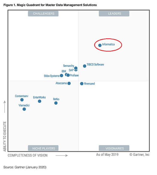 除了主数据管理魔力象限,Informatica还在以下Gartner魔力象限中均连续多年蝉联领导者地位:
