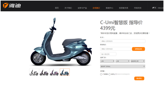 在预订流程设置上,雅迪充分保障了用户的舒适体验,只需简单三步,就能坐等爱车“自己上门”。首先用户需登录雅迪官网:http://www.yadea.com.cn/,点击在线预订,挑选心仪爱车。选定车辆后,填写个人信息即可预订成功。接下来,用户和门店将同时收到预订成功的短信;第三步,雅迪工作人员将联系用户看车,用户不论是自己到门店提车,还是要求门店送货上门都可以。