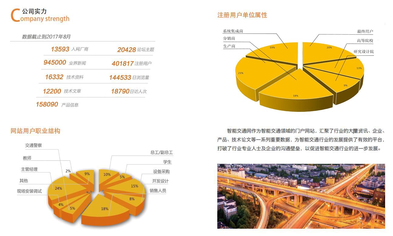主办方智能交通网,成立于2006年,是中国智能交通领域网络传媒的开创者。经过11年行业深耕,已经成长为智能交通行业信息量最大、用户数最多、专业性最强、服务最完善的行业传播平台。