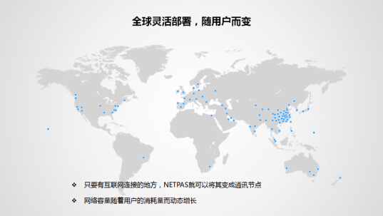 “互联网是由多张不同运营商组成的复杂网络,仅中国大陆就有超过400个ISP运营商,通过BGP协议自由组合而成网络,给网际通讯带来了压力。 我们经过十几年的不断积累,有用了成功商业化的自主技术,我们在传统的运营商由物理光纤和BGP协议构成的互联网上,独立搭建了一层网络,在全球部署接近400个节点,组成一张独有的建立在多运营商之上的SDN,基本覆盖全球;我们还会与客户签署一份用户专属的SLA品质保障协议,并严格执行,同时我们所有的技术,都是十余年来依靠自主研发,并形成成熟的商业化运营。”刘杰说到。