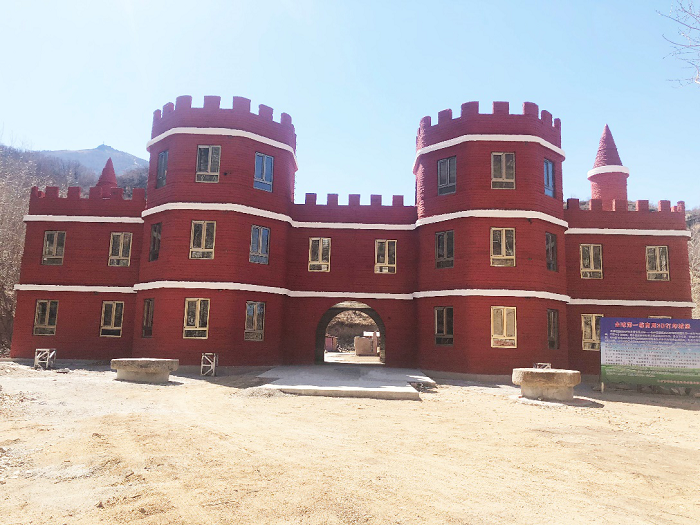 2018年10月,华商陆海历时2个月,成功打印出了一座面积超过600平米的“新温莎城堡”。据该企业相关技术人员介绍,该建筑如按传统的建筑工艺至少需9个月的建设周期,而使用华商陆海“直接浇灌成型”技术的3D打印设备后,实际施工周期缩短到了短短的2个月。在大幅缩短建筑周期的同时,在人工和建筑材料方面,也比传统建筑工艺节省了60%以上。在建筑验收环节,“新温莎城堡”完全符合现有的国家施工规范和标准!