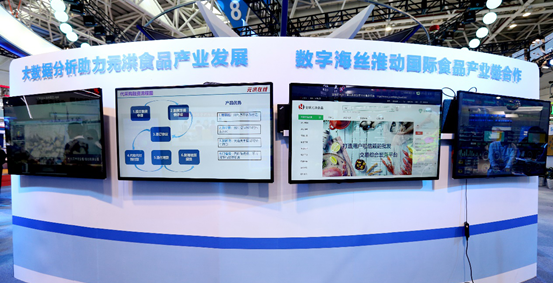 数字福建成果展区,展示了京东以数字科技赋能元洪实体经济的重要成果:位于园区内的京东(元洪)食品数字经济产业中心,于4月29日正式开园运营,该样板工程既是福清市发展数字经济的重要成果,也是食品产业层次提升、转型升级的有力举措,目前入驻京东(元洪)食品数字经济产业中心的食品企业达53家,引进食品生态项目29宗;由京东、福清政府及多方企业共同打造的集跨境贸易及国内分销于一体的全球食品展示交易公共服务平台——“全球(元洪)食品交易公共服务平台”已初具雏形,汇聚全球万亿食品产业交易,同时为食品产业提供全链条技术支撑。