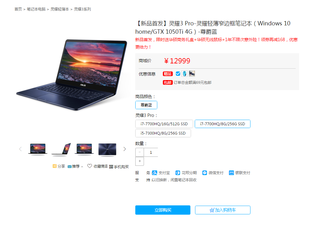 华硕灵耀3 Pro 华硕商城购买连接:http://store.asus.com.cn/product-2278.html?utm_source=PR&utm_medium=PR&utm_campaign=3SPRO&utm_content=pc(PC端)