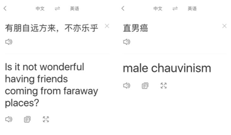 (图:搜狗翻译APP对古文、网生热词的翻译结果)
