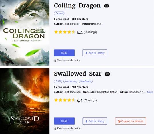 (我吃西红柿作品《盘龙》(Coiling Dragon)《吞噬星空》(Swallowed Star)在起点国际受到海外读者追捧)