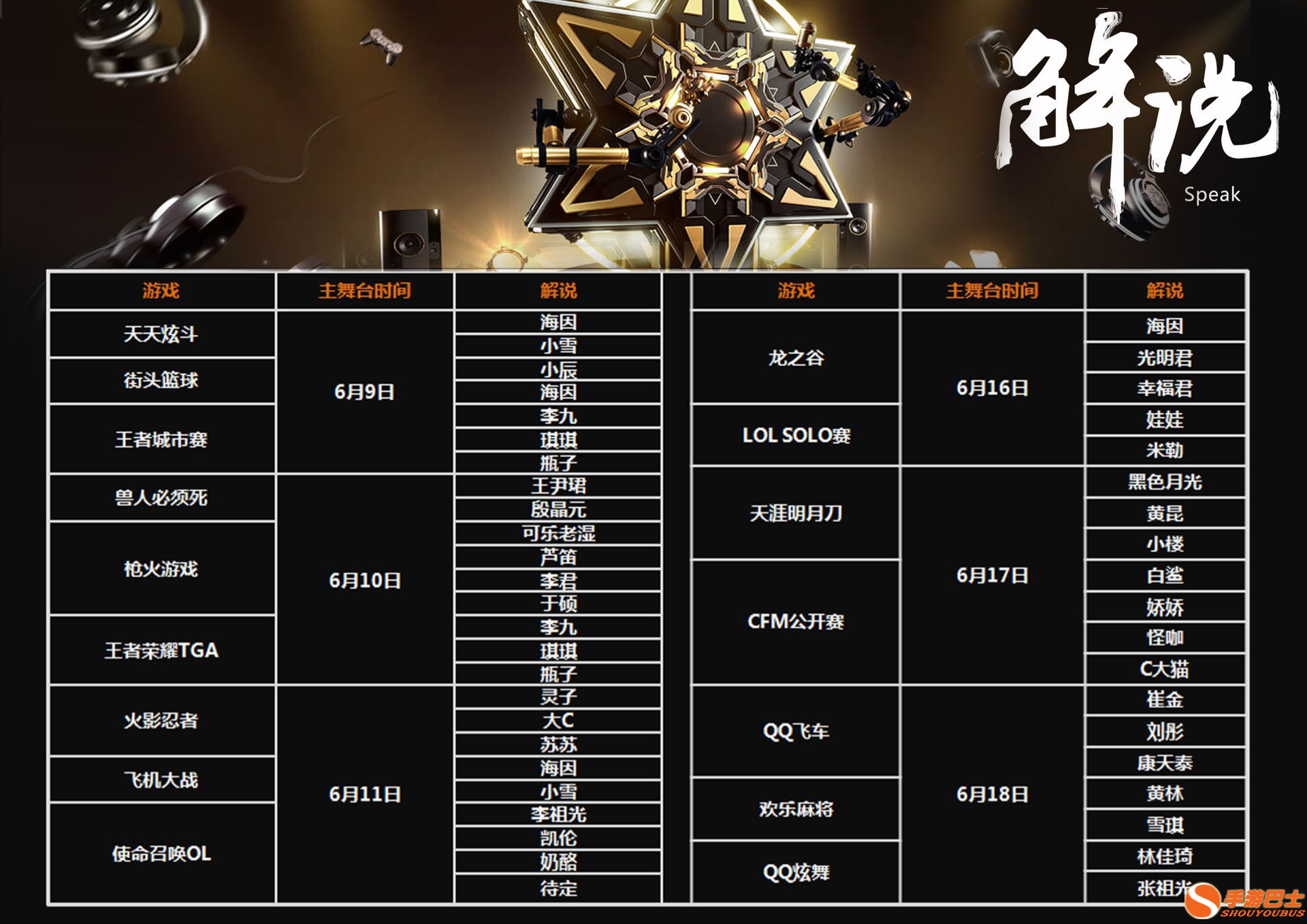 首周比赛从6月9日开始至6月11日结束,三天时间9个竞技游戏项目紧锣密鼓的将要展开。除了天天炫斗、街头篮球,飞机大战、火影忍者的赛事之外,更加备受瞩目的当属枪火游侠和王者荣耀TGA——前者将决出代表中国前往西班牙Dreamhack比赛的资格,后者的冠军则可获得KPL预选赛名额。相信火爆的对决,一定会吸引你的眼球!