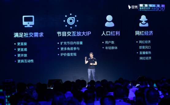 徐伟峰认为,直播行业未来的新风口在于“专业、节目化、精准受众和垂直网红”四个关键词。目前,爱奇艺已经建成以技术创新为支撑,覆盖视频、社交、电商、游戏等的娱乐生态,有效实现多平台、内容、用户联动循环。奇秀直播根植于爱奇艺,成为爱奇艺各细分内容的延伸,并制作产出直播内容,反哺爱奇艺,实现闭环式分众营销。在“专业、节目化、精确受众和垂直网红”这个新风口上,奇秀直播将从PGC公会合伙人、专业节目输送、音乐人计划实现专业性;依托爱奇艺实现每周近百场的泛娱乐直播,并通过健身、游戏、评书直播等垂直内容突破口,打造带有明确标签和主题的直播节目,同时自制优质的综艺直播内容实现节目化;借由大数据技术精准分析与爱奇艺生态支撑,优化垂直节目内容与准用户体验,实现用户间、用户与主播、用户与品牌/明星间的多维互动;针对某一细分用户的喜好和主播特质灌制垂直内容,并成立网红中心以培养节目网红,“网红+节目”特定组合,也将成为网红直播IP,这与其它三个关键词“专业、节目化、精准用户”是相关联的。