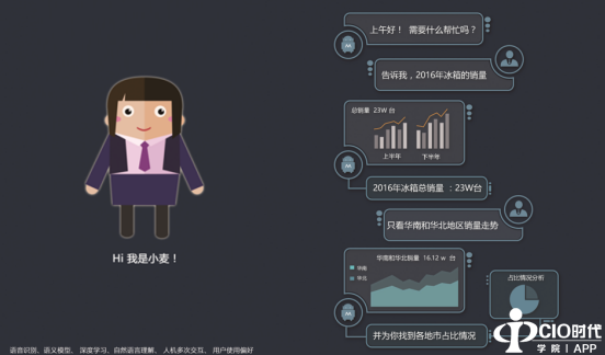Smartbi结合自身的元数据架构特点,率先把人工智能应用融入到大数据分析和商业智能领域,为用户推出“听话的“智能语音助手——小麦。她能够对系统内的报表体系和业务模型进行深度学习,识别用户的自然语言,帮助用户寻找打开报表、切换参数、探索数据、可视化数据等。用户无需操作鼠标键盘,只要动动嘴就可以完成数据分析的高难度动作。