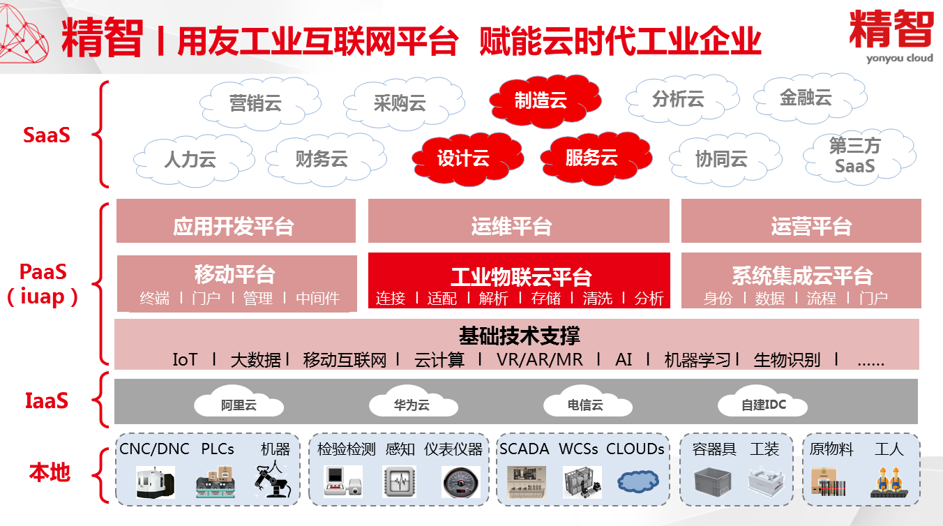 当然,精智有其发展的基础:首先,精智依托于用友历经多年精心打造的云平台iuap,天生具备完整的体系架构和应用实践;其次,精智联合众多厂商,突破工业物联短板,并从软件层面抽象提升,融入更多主动感知和主动学习的能力;再次,精智基于用友庞大的广泛覆盖的客户群,提炼出众多应用场景和实践案例,具备完整覆盖企业“产供销人财物”各个环节应用需求以及多工厂协同共享应用需求的能力;最后,精智的产生本就依赖于广大伙伴的支持,在开放平台和开放生态的环境下,各类伙伴的引入将更加顺畅,SaaS的丰富程度也会更加突出。
