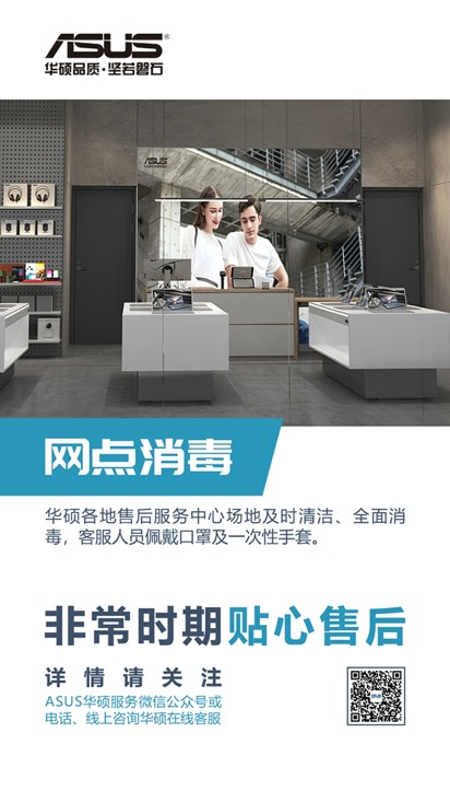 病毒无情,华硕有爱。华硕坚持以人为本的服务宗旨,特殊时期采取贴心售后。华硕售后网点和上门维修提供零接触服务,寄修代客消毒,线上客服随时待命。打赢战疫,华硕与您在一起!
