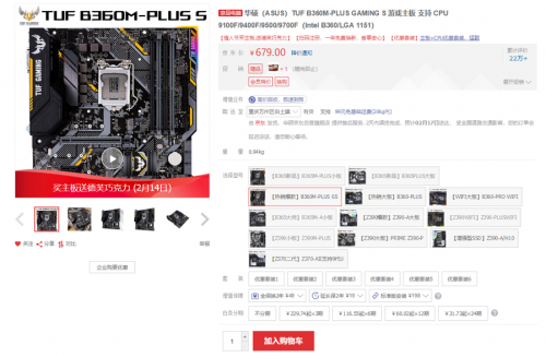 还有京东主板品类的销量王华硕TUF B360M-PLUS GAMING S主板,精选TUF军规认证用料,强化型7相数字供电,3个M.2接口,支持Intel CNVi无线模块。拥有华硕日益精进的电竞黑科技,并支持AURA SYNC神光同步,全方位升级加强,颜值性能俱佳。现京东售价679元,下单送德芙巧克力。购买链接:https://item.jd.com/8074512.html