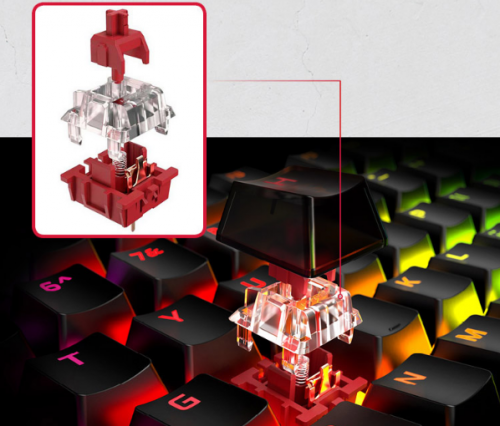 正因为触发键程更短,上手可以明显感受到速度反馈毫不拖泥带水,相比之下青轴和茶轴则略显生硬,HyperX自主红轴更可以用行云流水、挥洒自如来形容,对于竞技类游戏,响应更加迅速,没有延迟,是当下走位提速、一气呵成的不二之选。至于寿命的提升更是显而易见,HyperX自主红轴可承受8000万次敲击,为用户带来极高的可靠性和耐用性。