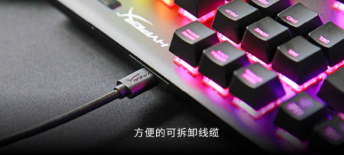 此外,出于对经常需要外出竞技的考虑,如何更便携始终是一个头疼的问题。以往键盘的数据线是固定在键盘上,如果需要携带,只能把数据线在键盘上缠绕多圈,非常不方便。这款起源RGB游戏机械键盘将数据线设计为可插拔的数据线,需要外出携带的时候,直接拔下数据线即可。并且数据线还采用编织线材质,不仅耐用,更耐拉扯,避免意外拉拽对数据线造成损伤。