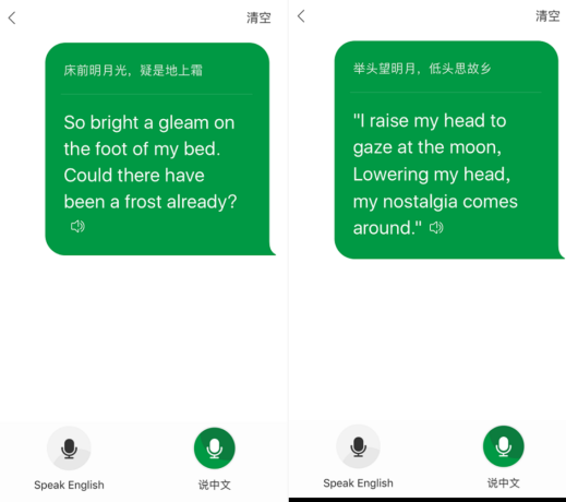 (图:用“对话翻译”功能翻译的《静夜思》)