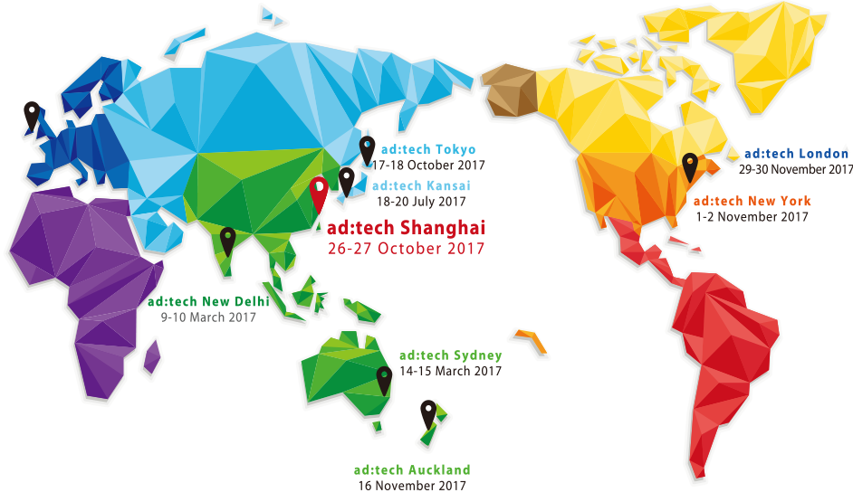 而在大洋彼岸的纽约,ad:tech 全球数字营销峰会已进开展了第一场活动。一同鉴证互联网兴衰与数字营销技术颠覆的ad:tech品牌此后开启了全球化进程。目前已经分别在纽约,伦敦,东京,釜山,新德里,悉尼和奥克兰多地定期举办,成为横跨多国的国际数字营销会议网络。而今年10月ad:tech品牌即将回归数字与与营销的热土——中国上海。