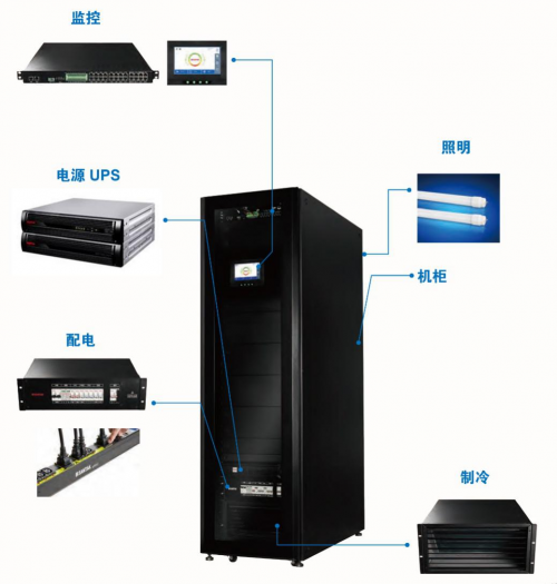 山特灵聚系列单机柜一体化解决方案采用一体化设计、标准化生产和标准机架设计安装方式,包含电源、配电、机柜、制冷、监控以及照明六大子系统。核心部件工厂预制、预装、预调试,将繁杂的现场安装迁移到工厂解决,客户现场只需接空调外机,完成 UPS 安装并上电即可开机使用,从而实现了现场简单安装,快速交付的诉求,而工厂严格的出厂检验及测试认证,也保证了产品的可靠性,减少现场接线、调试埋下的风险隐患。一体化的设计让现场维护也更加简单,还可以以单机柜为单位灵活扩容,减少初期投资压力。