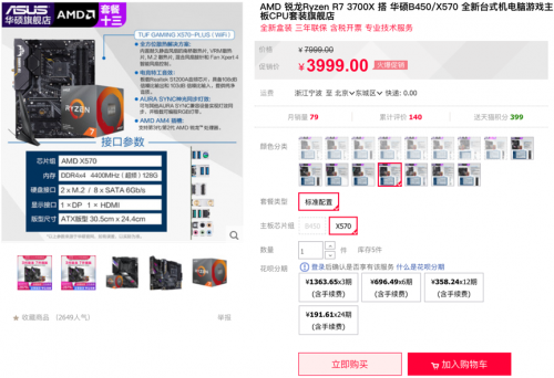 华硕TUF GAMING X570-PLUS(WI-FI)电竞主板实力强劲、散热优异,拥有出色的散热表现和超强的游戏支持,凭借绝对的游戏性能和犀利的颜值,赢得了众多A饭的一致好评,更在权威媒体X570主板横评中力压群雄,获得主流组第一名的好成绩。推荐搭配同样出色的3700X处理器,释放7nm锐龙多线程无可匹敌的游戏性能。现在购买板U套装更为实惠,下单到手仅为3999元!购买链接:https://detail.tmall.com/item.htm?id=597966265453&skuId=4422752607953