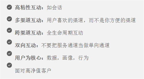 1、全渠道客户互动:全面支持网页、微信、微博、APP/IM、工单和呼叫中心等主流客户互动渠道。其中,环信业界领先的IM长连接技术支持千万级并发,保证消息必达,助力企业打造极致的移动端客户服务体验。所有渠道支持双向互动,如主动回呼,多渠道统一推送,基于用户行为的自动营销等,真正将服务通道与营销通道融合,实现客户中心从成本中心向利润中心的升级。