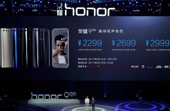 荣耀9,一款颜值与实力兼备的旗舰手机,6月12日起至6月15日在华为商城、京东、天猫荣耀官方旗舰店等八大电商平台同步启动预约,售价2299元起,线上预约更有好礼相送。