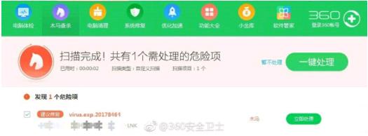 图:360安全卫士查杀“震网三代”攻击