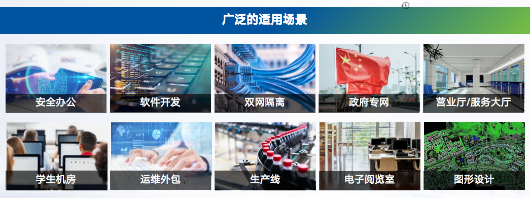 针对不同业务场景,无论是单一、多样、专业或者复杂的终端需求,如企业办公对安全的需求,政府办公对多网隔离的需求,金融开发测试对数据防泄密的需求,复杂图形设计对显卡资源的高性能需求,以及对于不同操作系统之间的切换需求,深信服桌面云都能很好地满足,并让用户获得办公体验的再次升级。