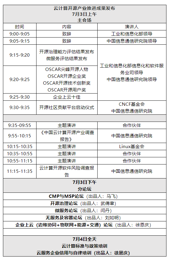2日、3日两场云计算大会结束后,云计算标准与政策培训将于7月4日举行,诸多云计算产业技术专家将带来最新云计算标准和政策的分享,以充实的学习为本次为期三天的云计算产业盛宴画上圆满句号!