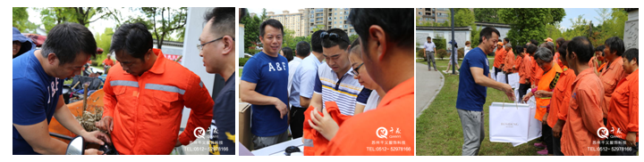 2017年8月23日,苏州千义服饰科技有限公司联合波司登集团向常熟市古里镇环卫工人,捐赠了一批空调服,用实际行动来关爱和关心基层工作者,用爱心唤醒整个城市的正能量。这一举动,受到了上万名环卫工人的诚挚感谢,受到了社会各界的强力点赞,也受到了各大媒体的极度关注和赞扬。
